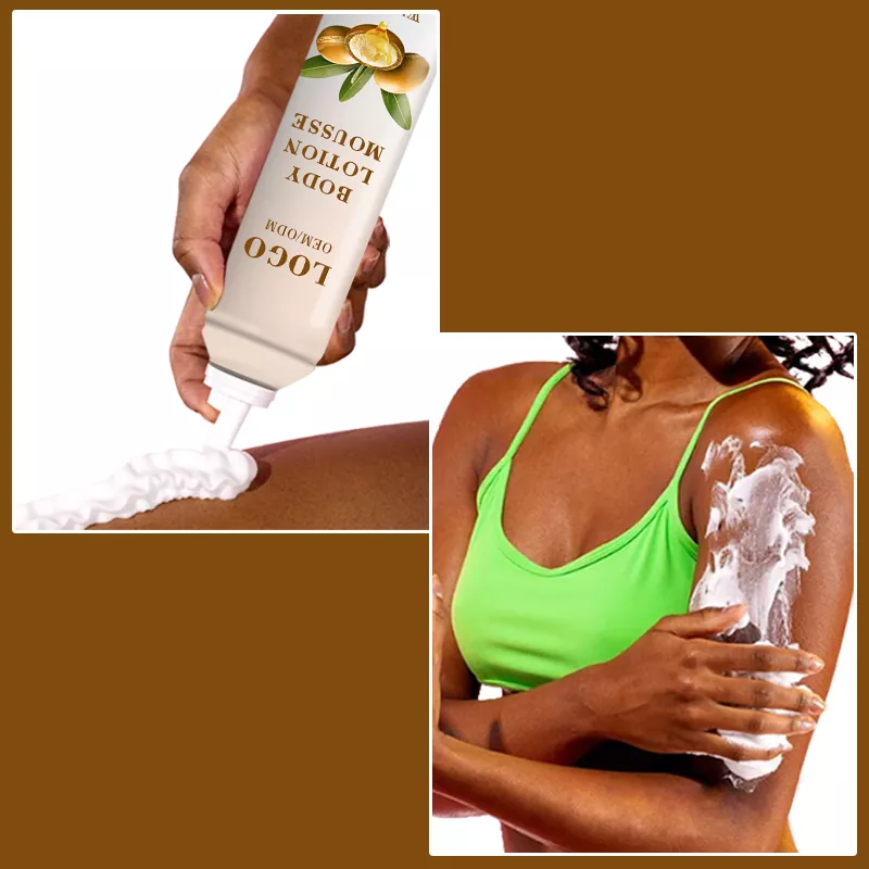 Вілсон хмарний яскравий лосьйон для тіла гідратації-це тривалий зволожуючий крем, який можна поглинути в організм. Наш мус поставляється в аерозольній формі в алюмінієвому банку, який виробляє багату піну при натисканні. У порівнянні з важким і липким відчуттям традиційних лосьйонів, наш мус для тіла приносить легкий дотик, як хмара м'якої та щільної. Крім того, у нас є різноманітні рецептури на вибір, наприклад, ви можете додати до формули, що містить високоефективні зволожуючі екстракти, такі як множинна гіалуронова кислота, природні рослинні екстракти тощо, які можуть зробити мікроструктуру піни, що є більш сприятливими для складу інгредієнтів безпосередньо під шкірою, так що вона має інтенсивне гідратацію та локальні, довгі обмеження зволожуючого ефекту на шкірі. Шкіра зволожується зсередини.