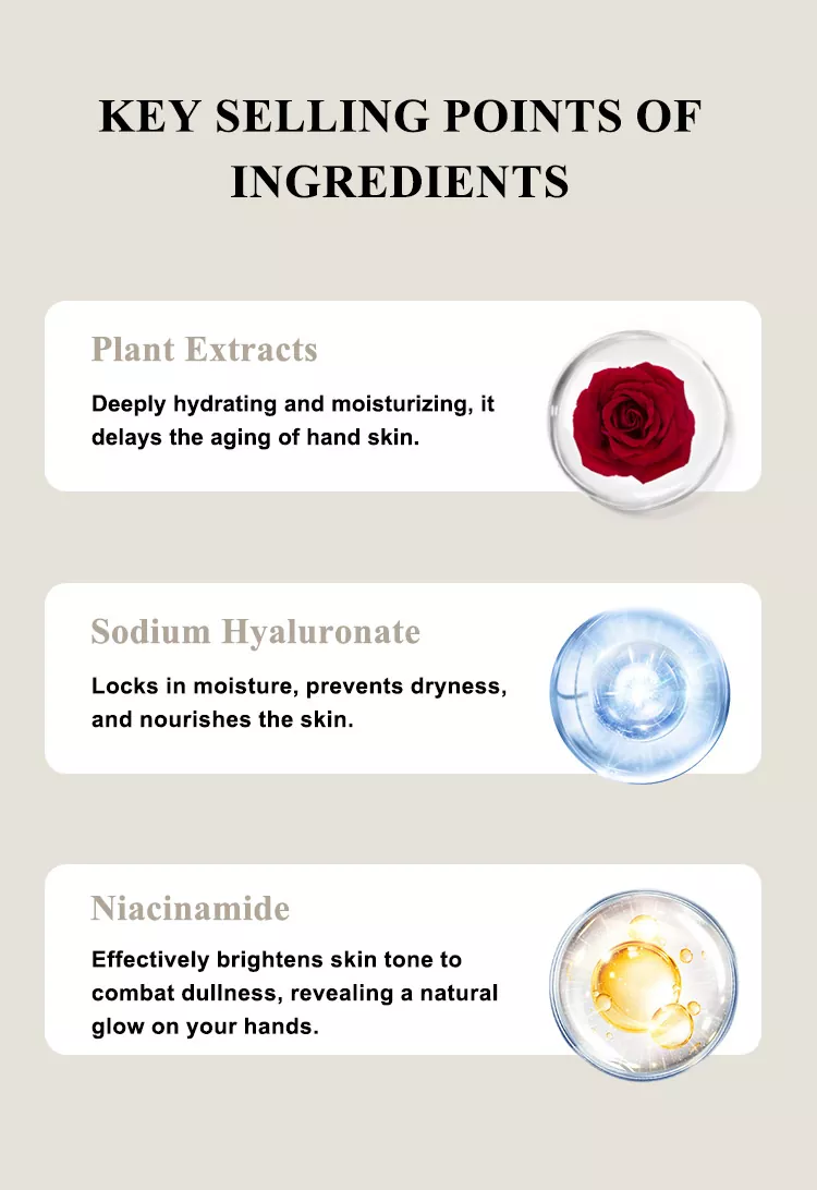 Після використання крему для рук Quick Absorption Immediate Relief Hand Cream шкіра стає делікатнішою, тонкі зморшки зменшуються, а вміст води в шкірі збільшується. Крем для рук підходить для різних випадків повсякденного життя, особливо для тих, хто часто миє руки, контактує з миючими засобами або перебуває в сухому, холодному середовищі. Будь то домашній догляд, офіс або активний відпочинок, своєчасне нанесення крему для рук ефективно захищає ваші руки та підтримує здоров’я та молодість шкіри.